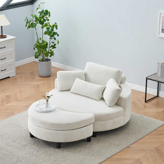 360° Swivel Chair Accent Barrel Chair with Removable Pillows, Beige Chenille Fabric, 56.3' Diameter