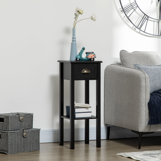 HOMCOM 29' 2-Tier Side Table with Drawer Shelf, End Table for Living Room, Black