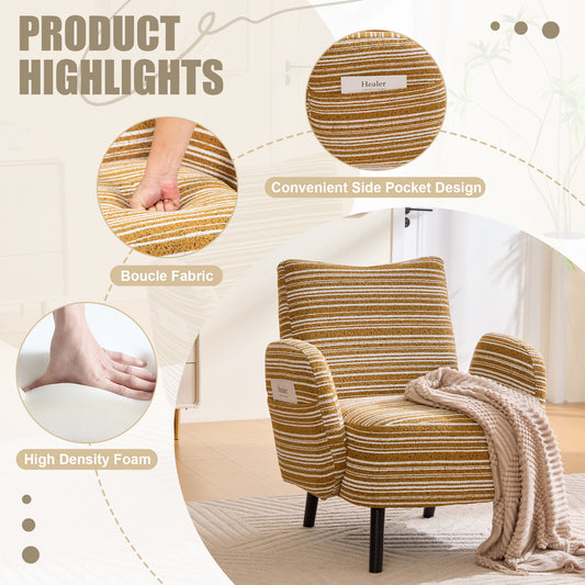 Modern style armchair with sanded fabric, side storage pocket, solid wood legs, comfortable reading chair for living room, bedroom, office