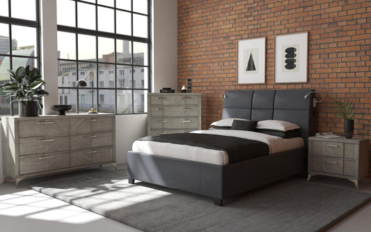 Queen 5PC Modern Style Storage Bedroom Set Made with Wood in Gray
