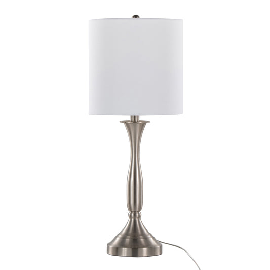 Sawyer 25" Contemporary Metal Table Lamp in Brushed Nickel with White Linen Shade and Built-in USB Port from Grandview Gallery by LumiSource - Set of 2