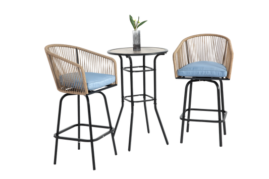 3pcs Outdoor Bar Set, Patio Bar Table and Chairs Set, Bar Height Patio Set - 2 x Swivel Bar Chairs , 1 x Round Bar Table(DPC Wood-Like)-Blue