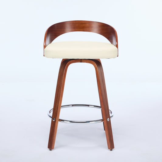 Bar Stools Set of 2, Swivel Bar Height Stools with Low Back, Wood Bar Chairs with Soft Cushion Seat, 25-Inch Seat Height (Beige, 25" Counter Height)