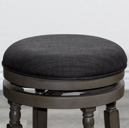 24" Counter Stool, Weathered Gray Finish, Charcoal Fabric Seat