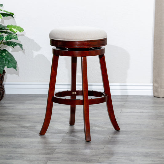 30" Bar Stool, Cherry Finish, Beige Fabric Seat