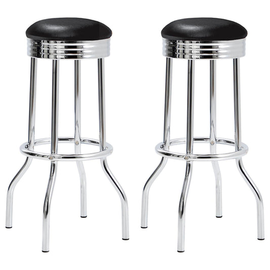 26" Backless Leather Counter Stools, 2-Pcs Set, Black