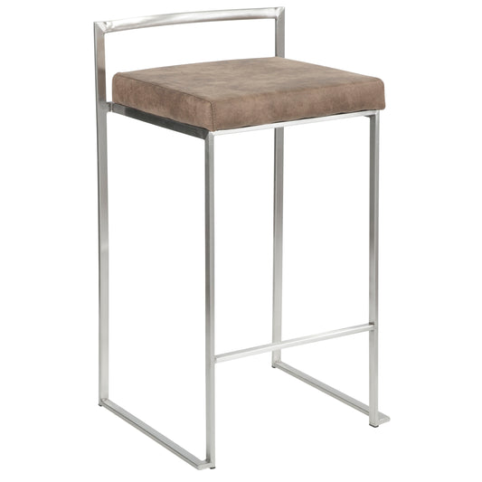 Fuji Contemporary Stackable Counter Stool in Stainless Steel with Brown Cowboy Fabric Cushion by LumiSource - Set of 2