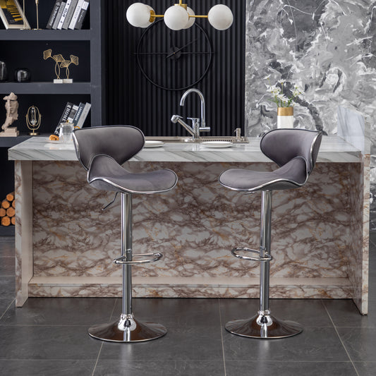 Masaccio Velvet Upholstered Adjustable Swivel Barstool, Set of 2, Gray