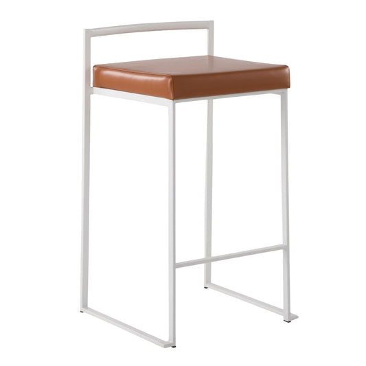 Fuji Contemporary Stackable Counter Stool in White with Camel Faux Leather Cushion by LumiSource - Set of 2