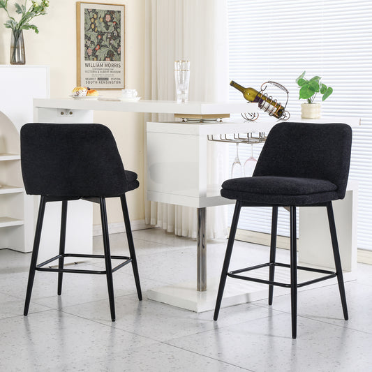 24.75'' Modern Counter Stools Set of 2,Black Counter Stools with iron Frame,Sponge cushion,Footrest,suitable for Kitchen/Bedroom/Dining Room
