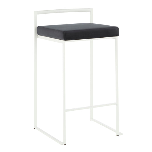 Fuji Contemporary Stackable Counter Stool in White with Black Velvet Cushion by LumiSource - Set of 2