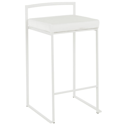 Fuji Contemporary Stackable Counter Stool in White with White Faux Leather Cushion by LumiSource - Set of 2