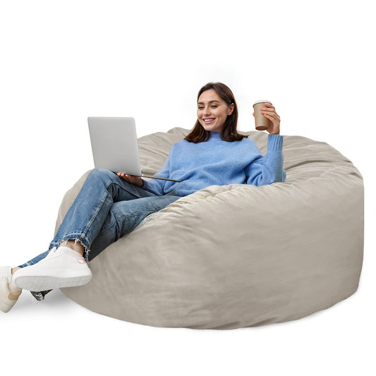 5-Foot Comfortable High-Density Shredded Foam Bean Bag Chair for Kids and Adults, with Removable Microsuede Cover, Ideal Reading and Bedroom Floor Lounge, Tuscany