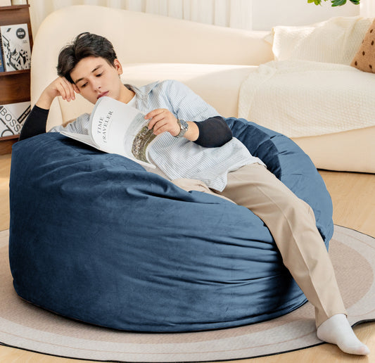5-Foot Comfortable High-Density Shredded Foam Bean Bag Chair for Kids and Adults, with Removable Microsuede Cover, Ideal Reading and Bedroom Floor Lounge, Midnight Blue