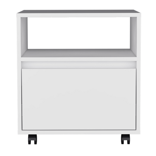 Austin Nightstand , End Table, Side Table Casters, Single Drawer-White