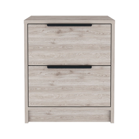 Brownish Gray Finish 1pc Nightstand Melamine Laminate 2x Drawers Dark Metal Hardware Bed Side Table