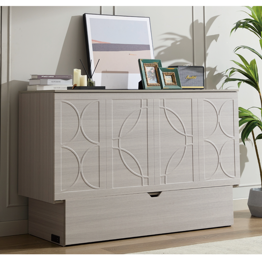 Cabinet Bed with Storage, Queen Bed ,Folding Foam Mattress & Oversized Drawers, Murphy Bed , Set of Sockets & USB Ports,Space-Saving Folding Murphy Bed , Gray