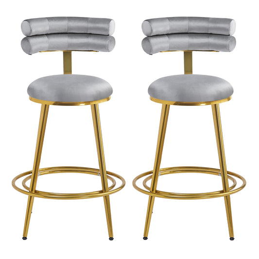 26'' Counter height bar stools Set of 2,velvet kitchen island counter bar stool with hand- wave back,golden chromed base and foot rest(GREY)