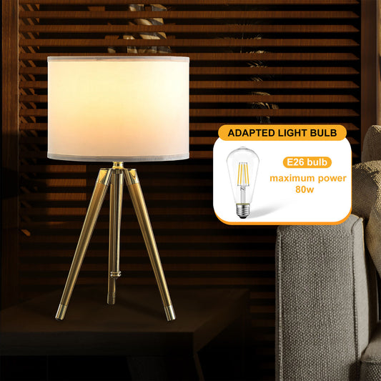 35.5" - 25.75"H Adjustable Hieght Brass/Shiny Gold Modern Tripod Table Lamp for Living Room, Nightstand Bedside Table Lamp for Bedroom, LED Lamp