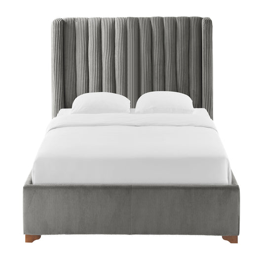 Twin Size Modern Design Bed Frame Upholstered Queen Bed Frame Platform with Headboard Corduroy Headboard Wooden Slats Support, No Box Spring Needed,Mattress Foundation,Dark Grey