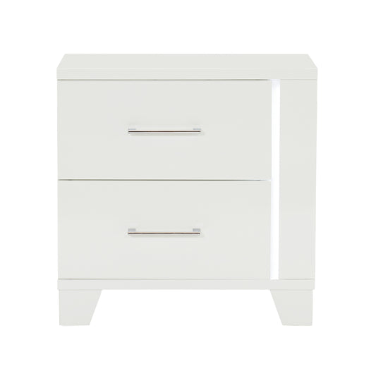 White High Gloss Finish Modern Bedroom 1pc Nightstand with LED Light Wooden Furniture Luxury Bedside Table