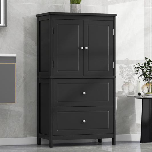 Bathroom Storage Cabinet, Cabinet with Two Doors and Drawers, Adjustable Shelf, MDF Board, Black