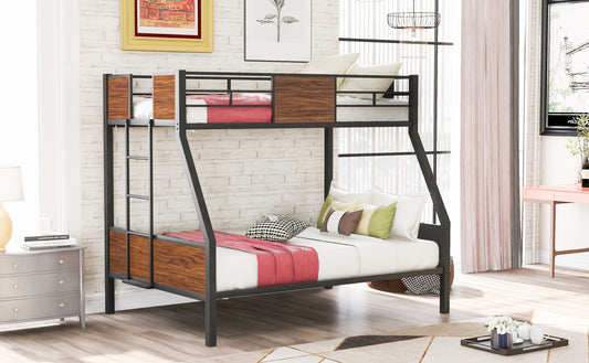 Twin-over-full bunk bed modern style steel frame bunk bed with safety rail, built-in ladder for bedroom, dorm, boys, girls, adults (OLD SKU:LP000090AAD)