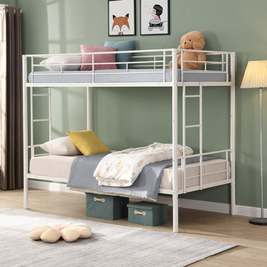 Twin-Over-Twin Bunk Bed with Metal Frame and Ladder, Space-Saving Design,White
