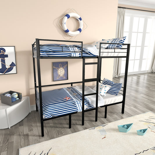Metal Twin Size Triple Bunk Bed, Black - Sturdy 3-Bed Stack with Dual Ladders, Heavy-Duty Steel Frame, Space-Saving Design