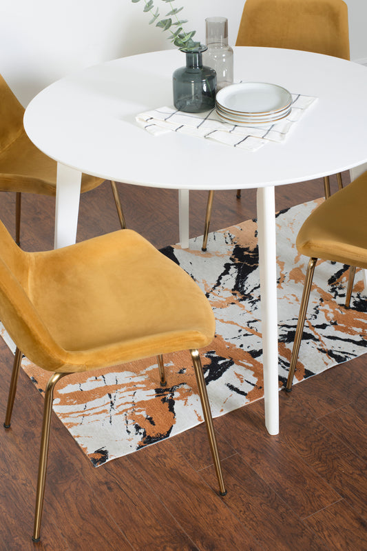 Amoa Contemporary 5-Piece Dining Set, White Round Dining Table with 4 Chairs