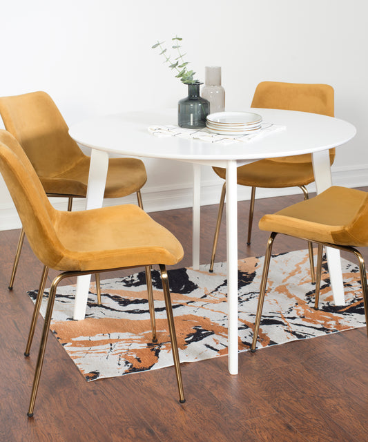 Aufurr Contemporary 5-Piece Dining Set, White Round Dining Table with 4 Chairs