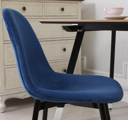 Folia Pebble Mid-Century Modern Dining Set in Walnut Wood, Walnut Metal and Blue Fabric by LumiSource - 7 Piece