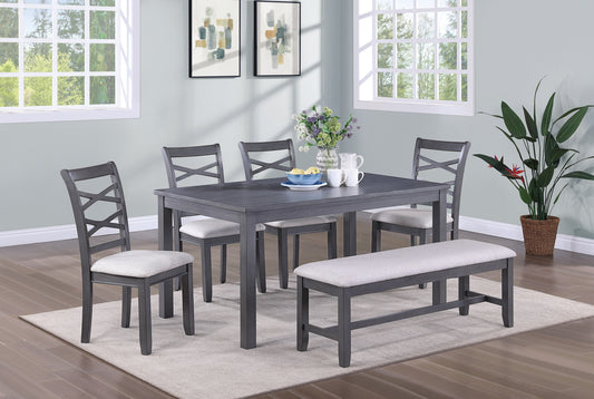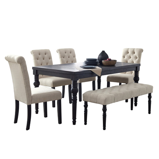 Leviton Urban Style Dark Wash Wood Dining Set: Table, 4 Chairs and Bench