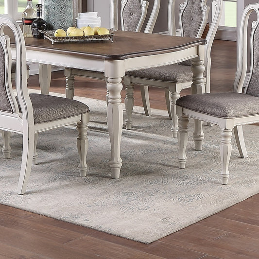 Transitional Style 7pc Dining Set Dining Table w Oak Top 6xSide Chairs Cushion Seat Antique White Kitchen Dining Room