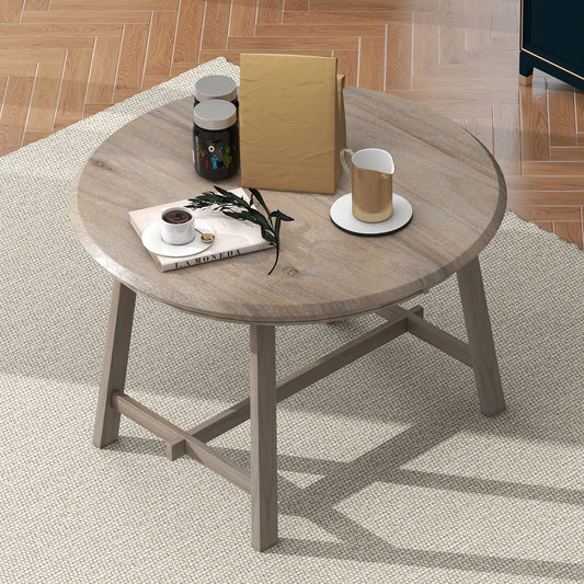 TREXM Wood Dining Table Round Extendable Dining Table for Dining Room (Gray)