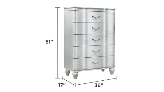 Landmark Traditional Style 5-Drawer Chest With metal drawer pulls Made with Wood in Silver