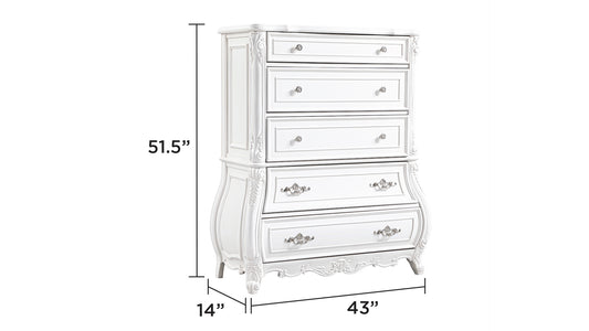 Opulence Modern Style 5-Drawer Chest Made with Wood in Pearl White