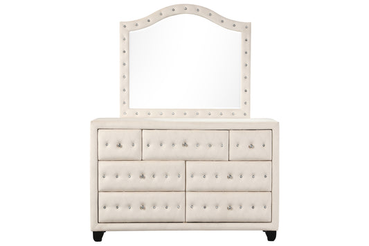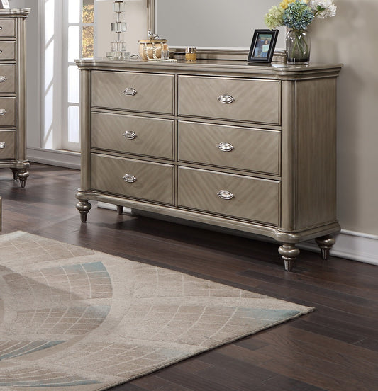 Luxury Antique Silver / Champagne Finish Dresser w Mirror Storage Space Drawers Bedroom Furniture