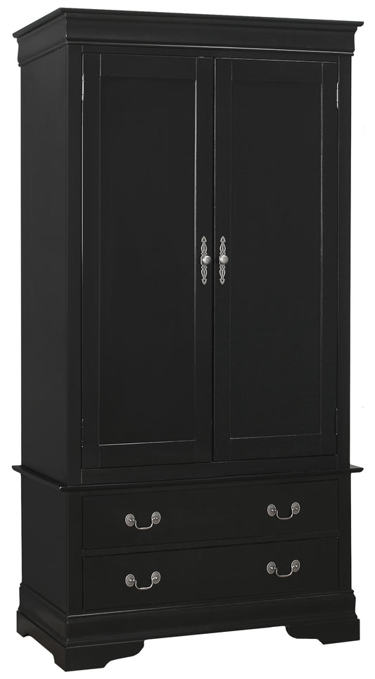 Denver Mobile Armoire, with hanging Rods, Double Door Cabinet, Three Drawers, Two Shelves Black