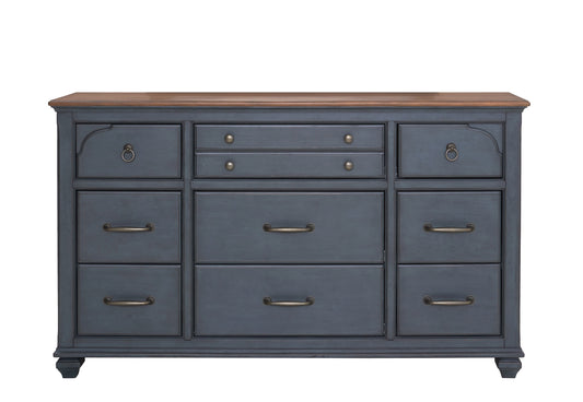 Beautiful Farmhouse Two-Tone Finish 1Pc Dresser Storage Drawers Bedroom Furniture Black Nickel Hardware
