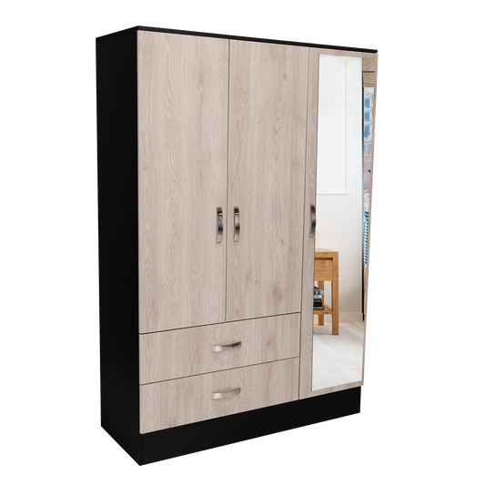Black Rock 2-Drawer Small Armoire with Mirror Door Black Wengue and Light Gray