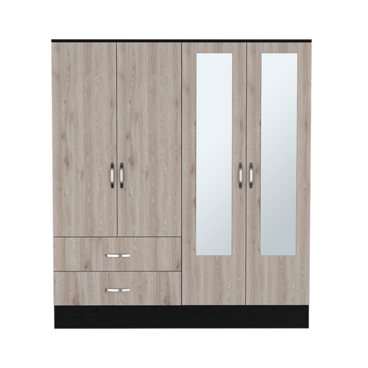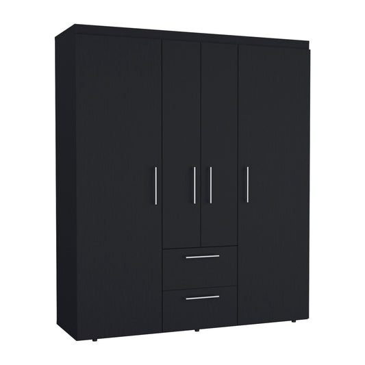 Bariloche Wardrobe, Multi-Section Storage with Hanging Rods, Shelves, and 2 Drawers