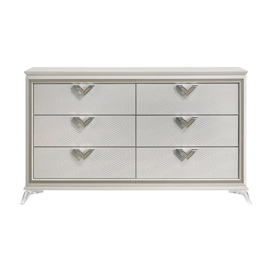 Asteria 6 Drawer Double Dresser, Metal Handles -White