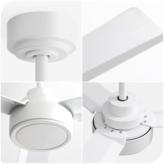 52 Inch Modern Ceiling Fan with 22W LED Light, 3 ABS Fan Blades DC Motor White Ceiling Fan for Indoor