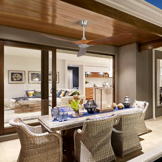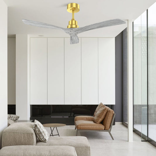 52 Inch Indoor Ceiling Fan Without Light 3 Solid Wood Blades Remote Control Reversible DC Motor