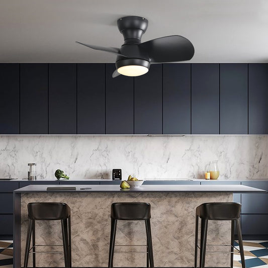 21'' low noise matte black abs blade remote ceiling fan with led light for Kitchen Bedroom Dining room Toilet Patio (Matt Black)