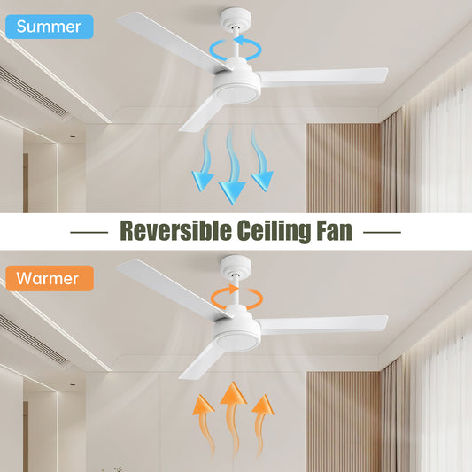 52" Ceiling Fan Without Light, 3 ABS Blades Farmhouse Ceiling Fan with Remote Control 6-speed Reversible DC Motor White for Living Room, Bedroom, Kitchen