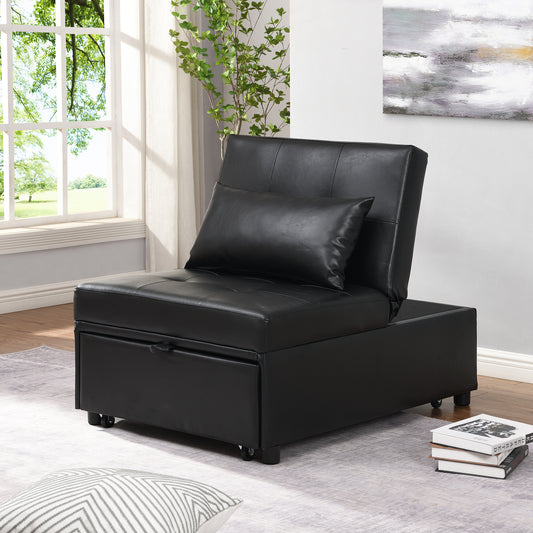 3 in 1 Convertible Sleeper Sofa Bed, Modern Pull Out Couch Bed, Adjustable Backrest, Velvet Loveseat Futon Sofa with Pillows & Pockets for Living Room Apartment, Black