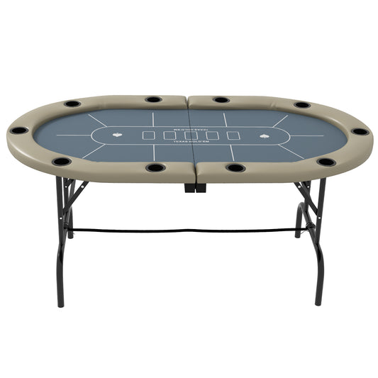 Soozier Poker Table Foldable, 70" Oval Blackjack Casino Texas Holdem Poker Game Table for 10 Players with Cup Holders, Blue and Brown