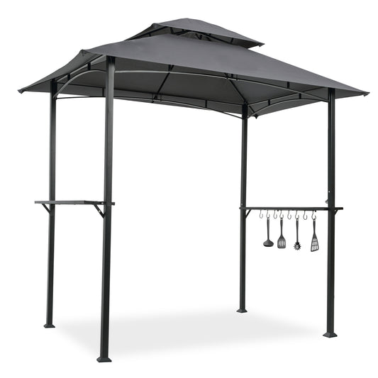 Outdoor Grill Gazebo 8 x 5 Ft, Shelter Tent, Double Tier Soft Top Canopy and Steel Frame with hook and Bar Counters,Khaki